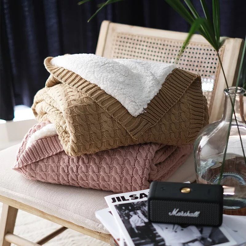 【お取り寄せ】リバーシブル調ケーブルニットのブランケット