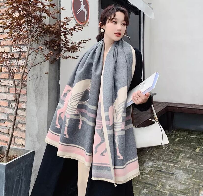 ●レディーなカシミアスカーフ/グレーマルチ